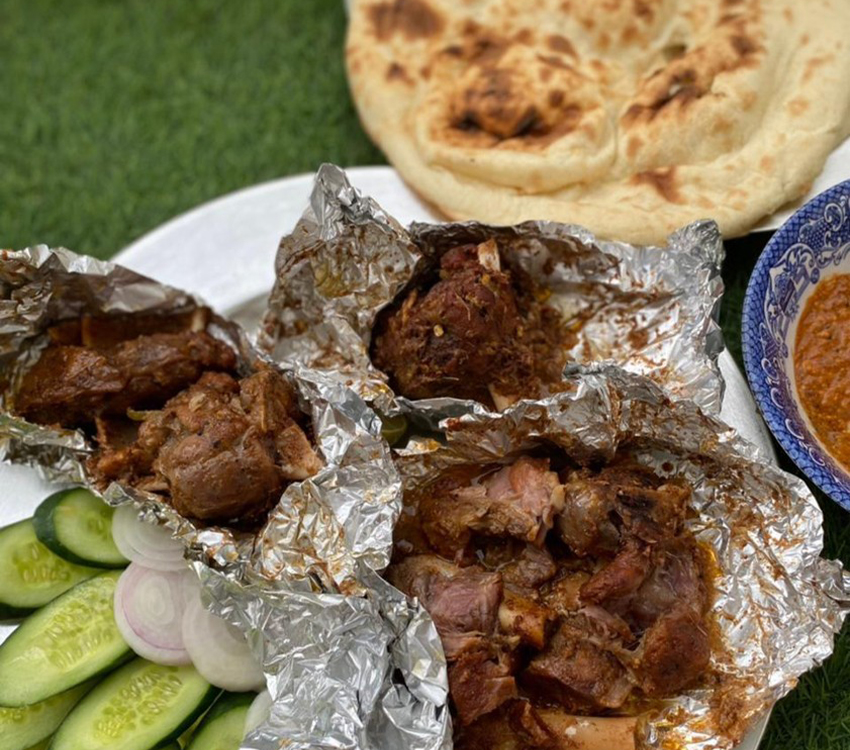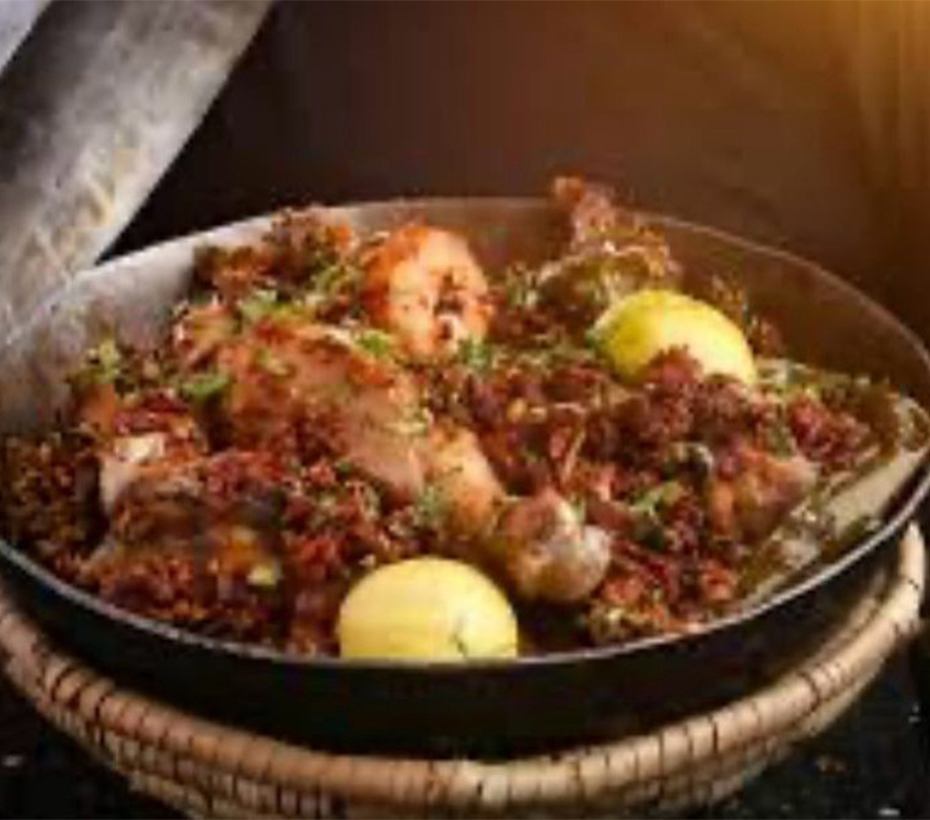 The “Khaddi” Pit – The dish gets its name from the pit dug into the ground where the whole lamb or goat is roasted. Stuffed with fragrant spiced rice, almonds, and raisins, the meat turns irresistibly tender, infused with deep smoky flavor and rich aromas. One of our Signature dish for Royal gatherings.