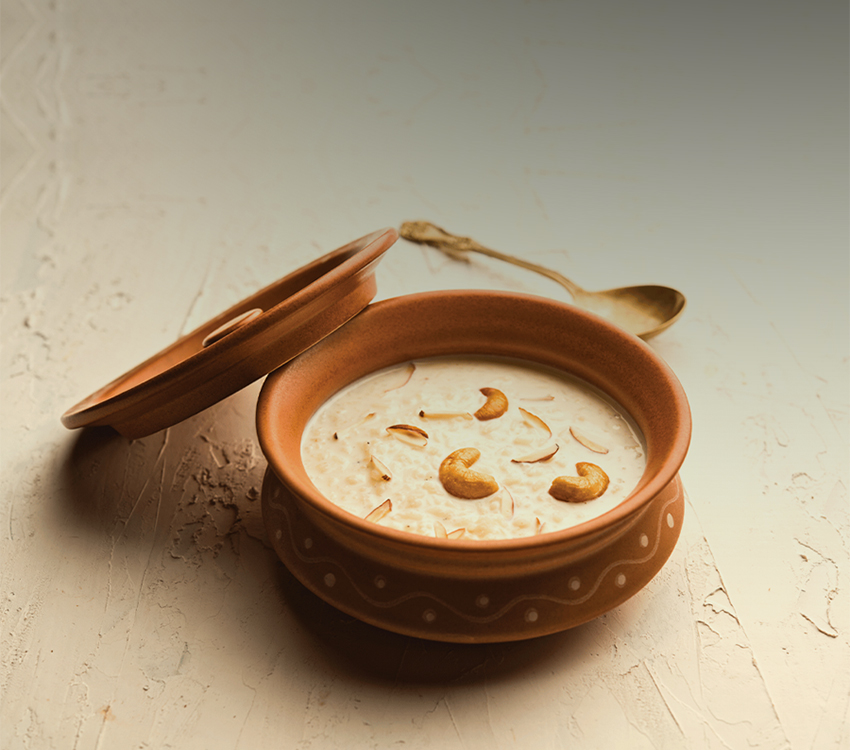 Creamy, slow-cooked rice pudding enriched with khoya and topped with golden roasted nuts—rich, indulgent, and irresistibly aromatic.