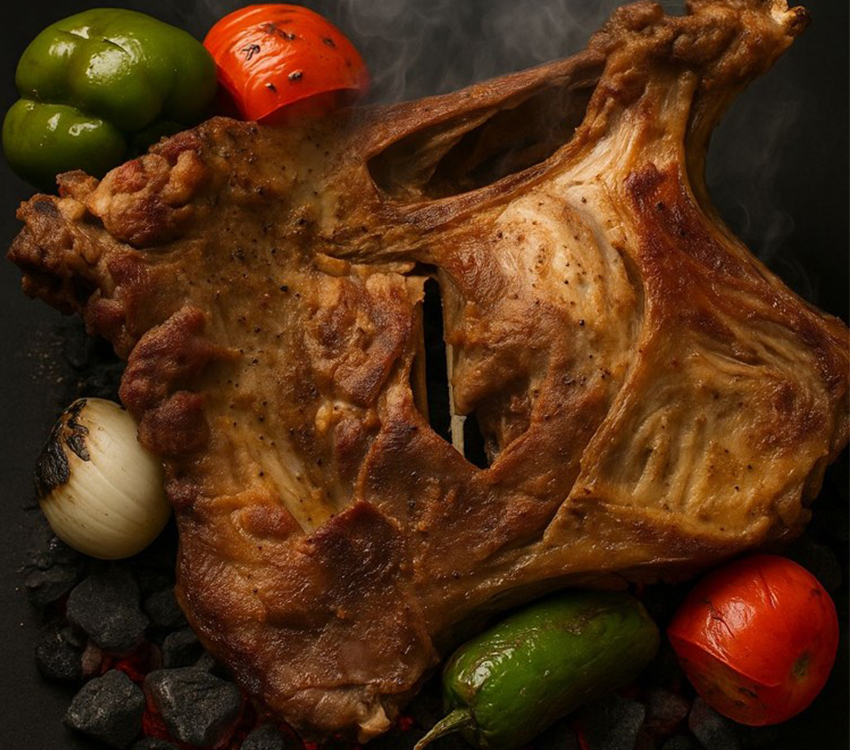 Juicy, spice-marinated mutton slow-roasted in foil to lock in flavor—tender, aromatic, and irresistibly rich in every bite.