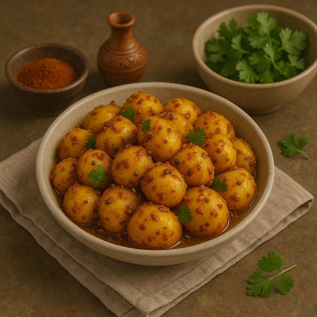 Baby potatoes simmered in a tangy, spiced gravy bursting with zesty flavor’s. A comfort classic that’s bold, chatpata, and utterly addictive!”